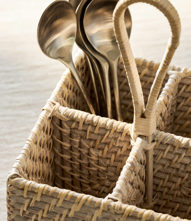 Foye Rattan Cutlery Caddy – Handwoven Whitewashed Utensil Holder