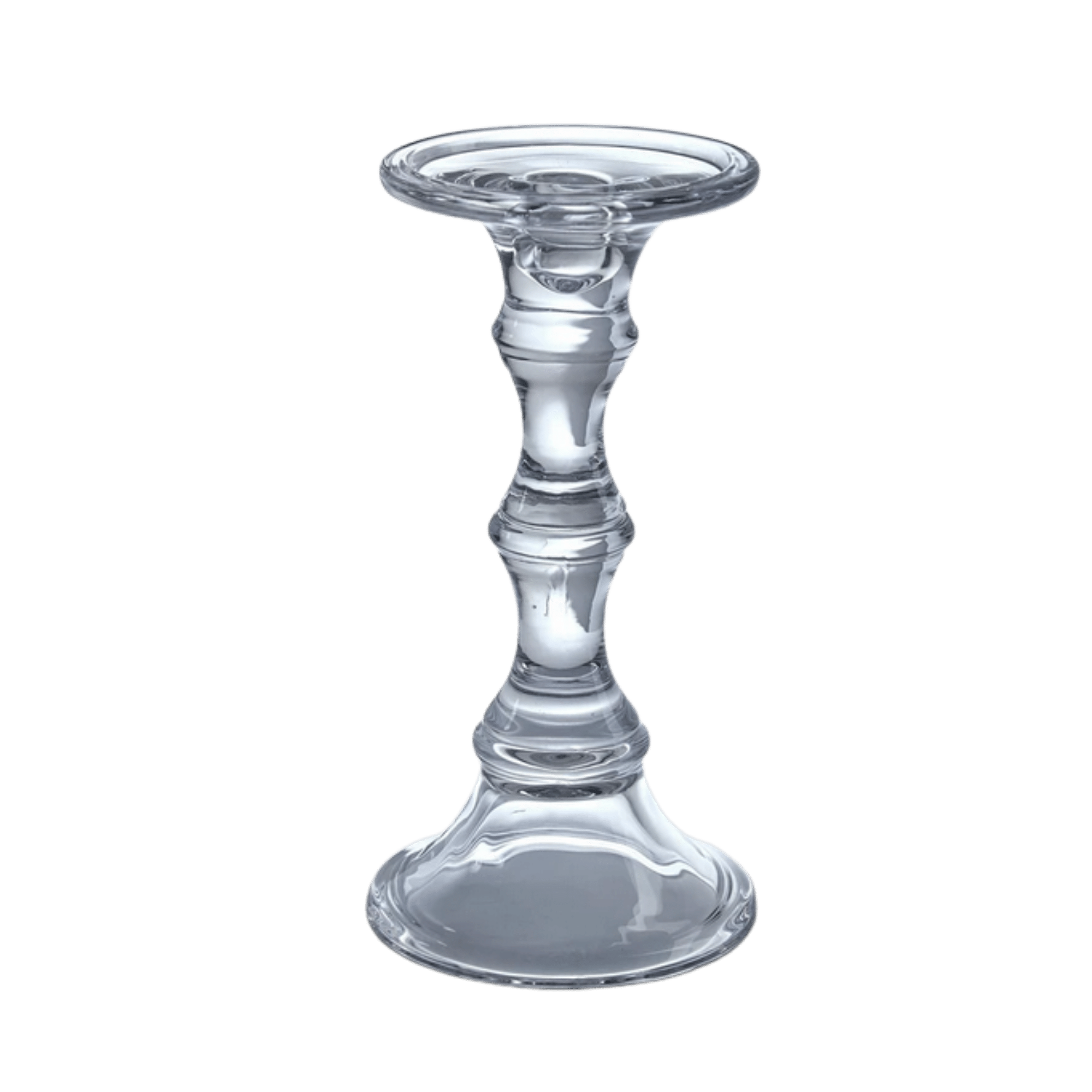 Our tall slim glass pillar candle holders add simple elegance to your tablescape and room decor. Featuring a sturdy, heavyweight glass candle holder with a ridged central column, this candle holder is a perfect way to add height and glamour to your candles.