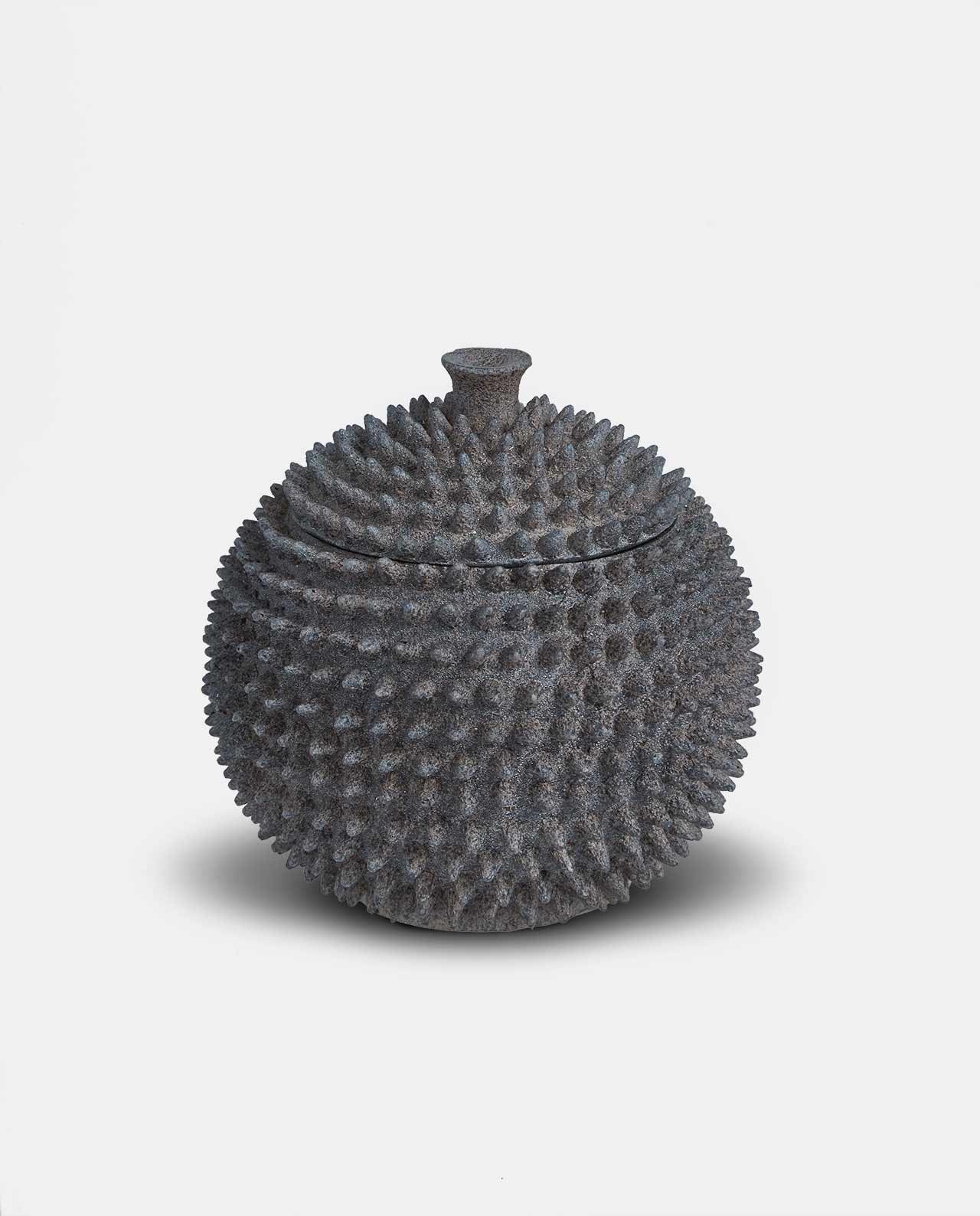 Lid is removable. Wipe with damp cloth to clean. Distinctive spike pattern adorns this gorgeous ornament.