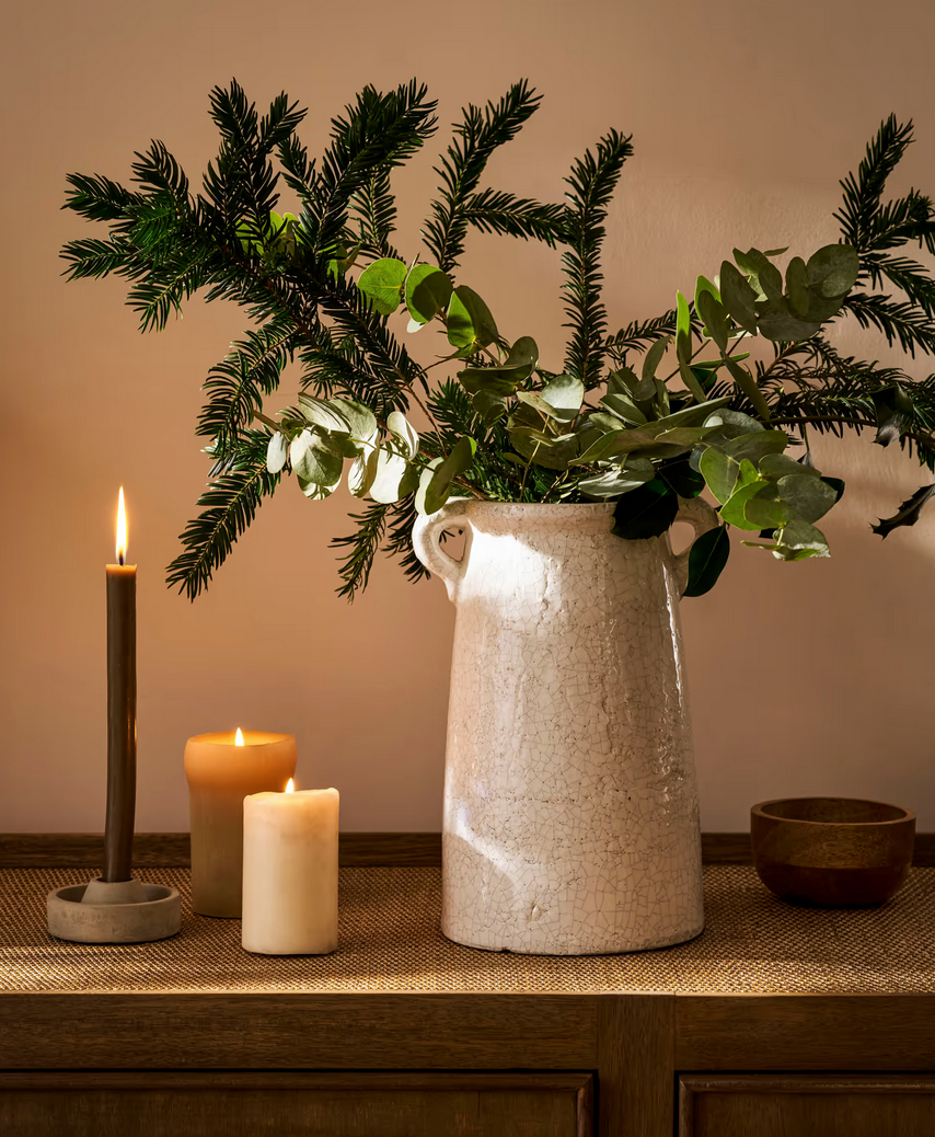 With its distinctive crackle glaze this tall vase with chunky handles is a welcome addition to our vase collection. Style with tall slender stems for a striking display.