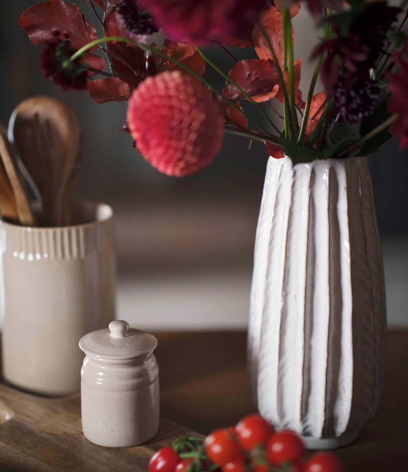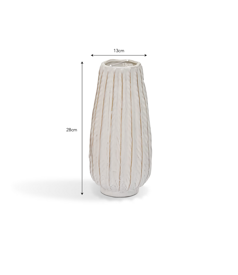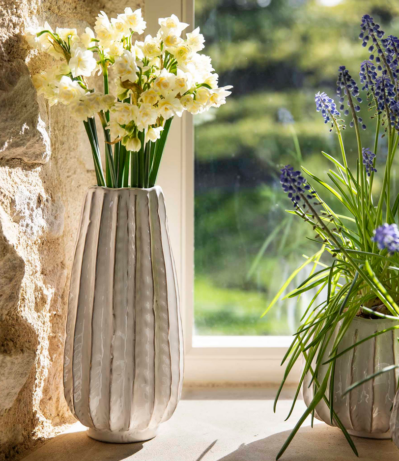 A statement piece in its own right, the Mornington Vase is as much a work of art as it is a vessel for flowers. Crafted in ceramic with deep vertical grooves and a subtly uneven finish, it captures the charm of handmade design and brings character to any room.